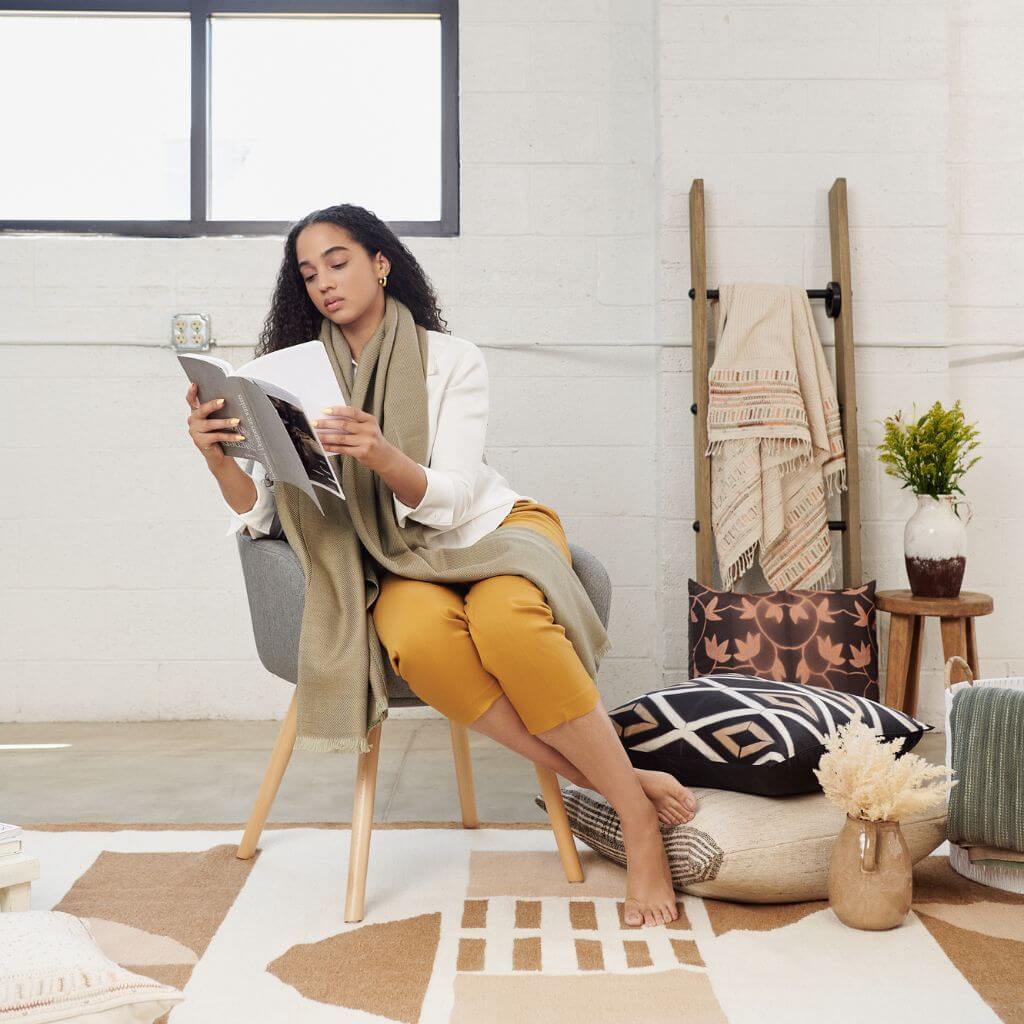 Enhance your interiors with our collection of sustainable rugs. Bring your living space together with our ethically handwoven rugs—from luxurious hand-knotted merino wool pieces to hand-loomed jute and wool blends that celebrate heritage techniques. For the minimalist and eco conscious interior designer, explore our 100% handmade rugs made with natural dyes. Pair with our throws and pillows to complete your space. Shop sustainable rugs online, or visit one of our stockists in the USA.